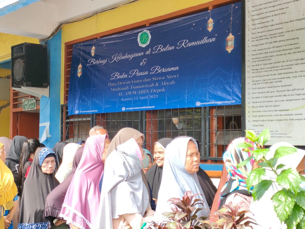 Masih dalam semarak bulan suci Ramadan, Madrasah Al-Awwabin menyalurkan paket sembako dan zakat fitrah kepada masyarakat sekitar yang membutuhkan. Kegiatan tersebut diadakan pada Kamis, 13 April 2023. Selain penyaluran paket sembako dan zakat fitrah, Madrasah Al-Awwabin juga memberikan santunan kepada anak-anak yatim. Berbagi kebahagian menjadi tujuan utama dari terselenggaranya agenda tersebut.