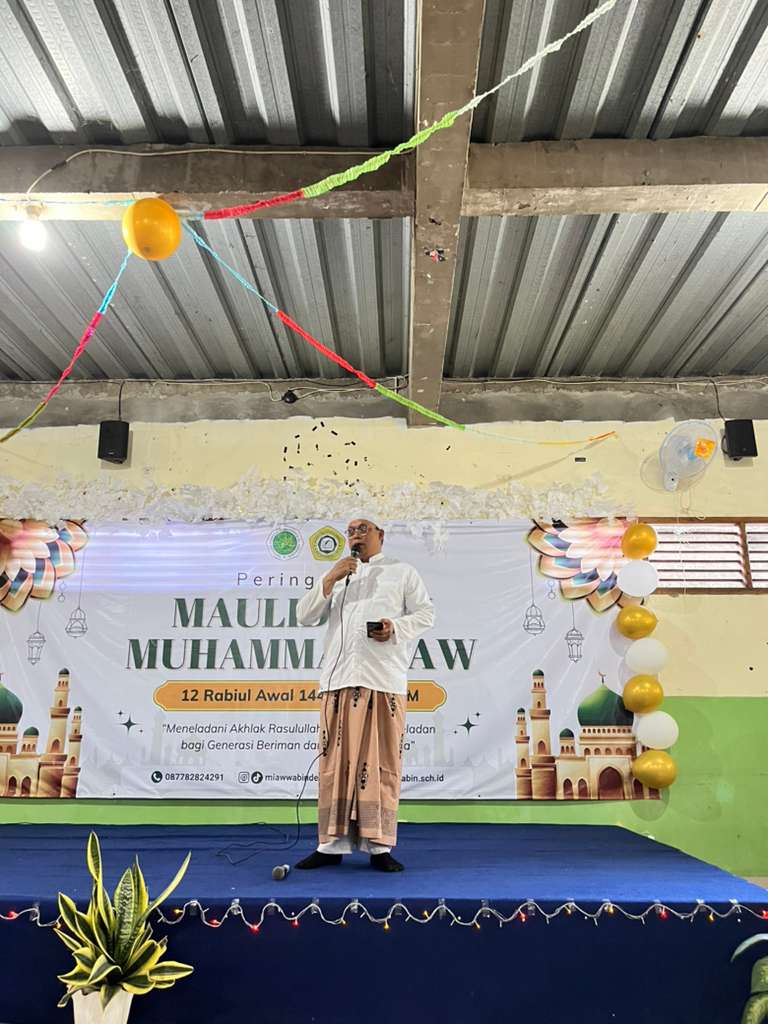 Sementara itu, Kepala MI Al-Awwabin, Bapak Ahmad Fauzi, S.Pd.I., dalam sambutannya menegaskan pentingnya meneladani akhlak Nabi dalam kehidupan sehari-hari.